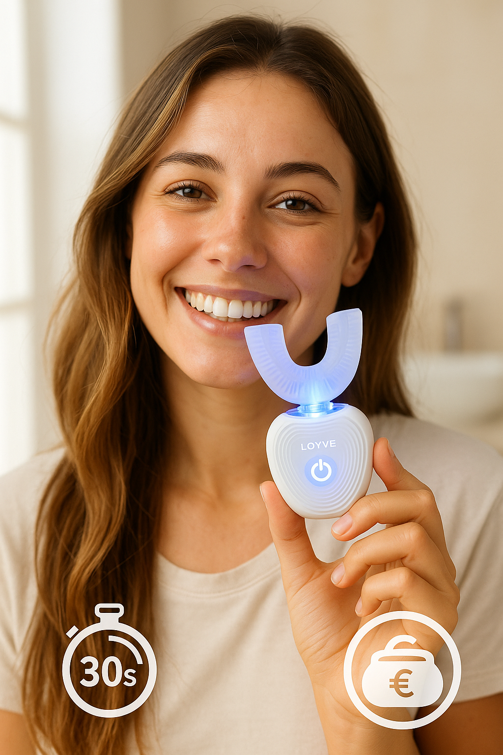 El Loyve SmartBrush 360 utiliza tecnología de vibraciones sónicas avanzadas y un diseño en U que cubre toda la boca. Esto permite limpiar simultáneamente todos los dientes y encías en solo 30 segundos, proporcionando una limpieza completa y efectiva en menos tiempo que un cepillo convencional.